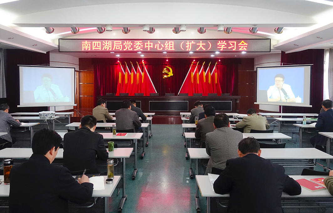 4月17日,南四湖局举办党委中心组(扩大)学习会,观看了中央党校校委委员、副教育长兼科研部主任韩庆祥教授主讲的《习近平总书记治国理政新理念新思想新战略》视频。局领导、全局副科级以上干部及机关全体党员参加了学习会。